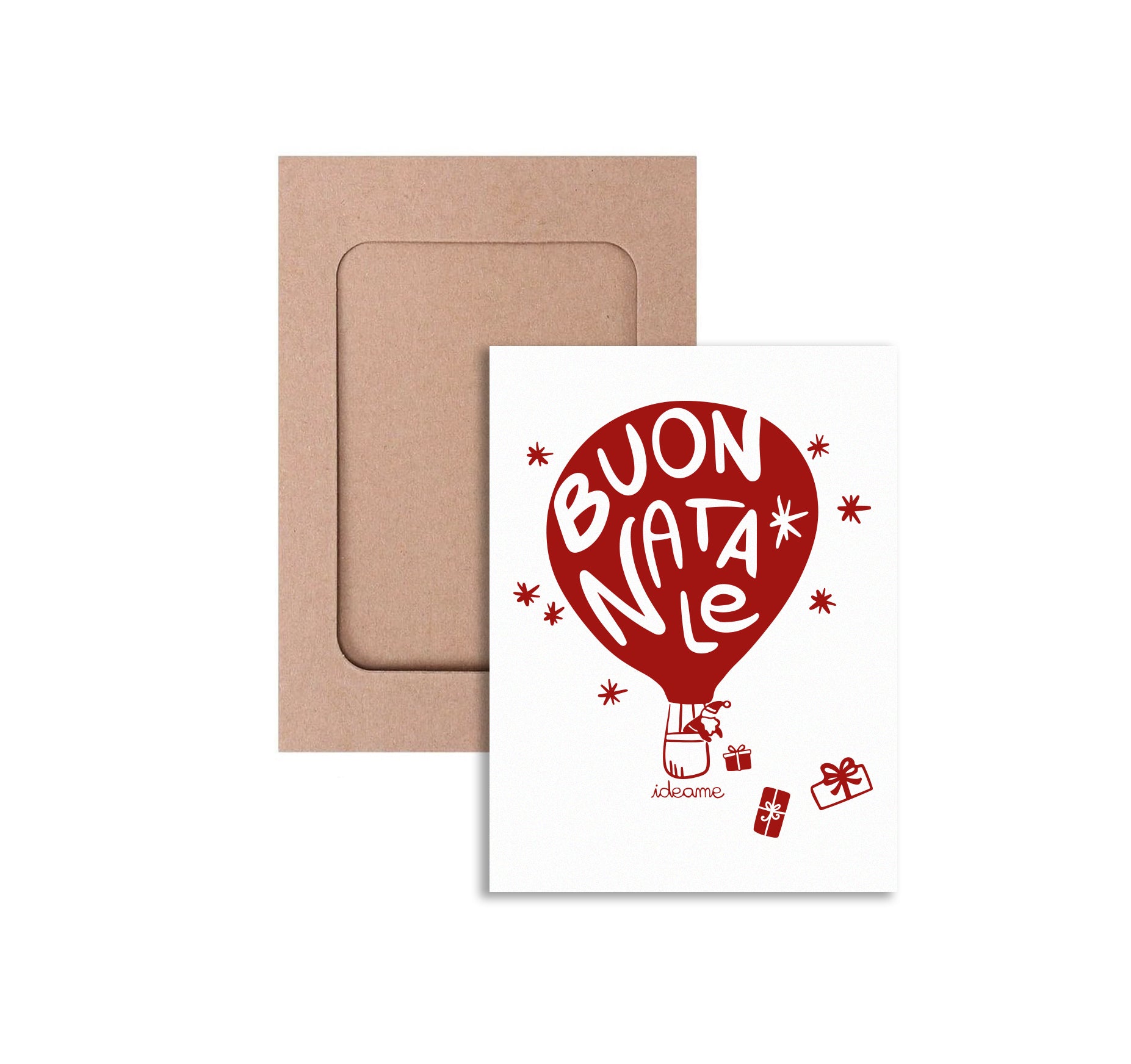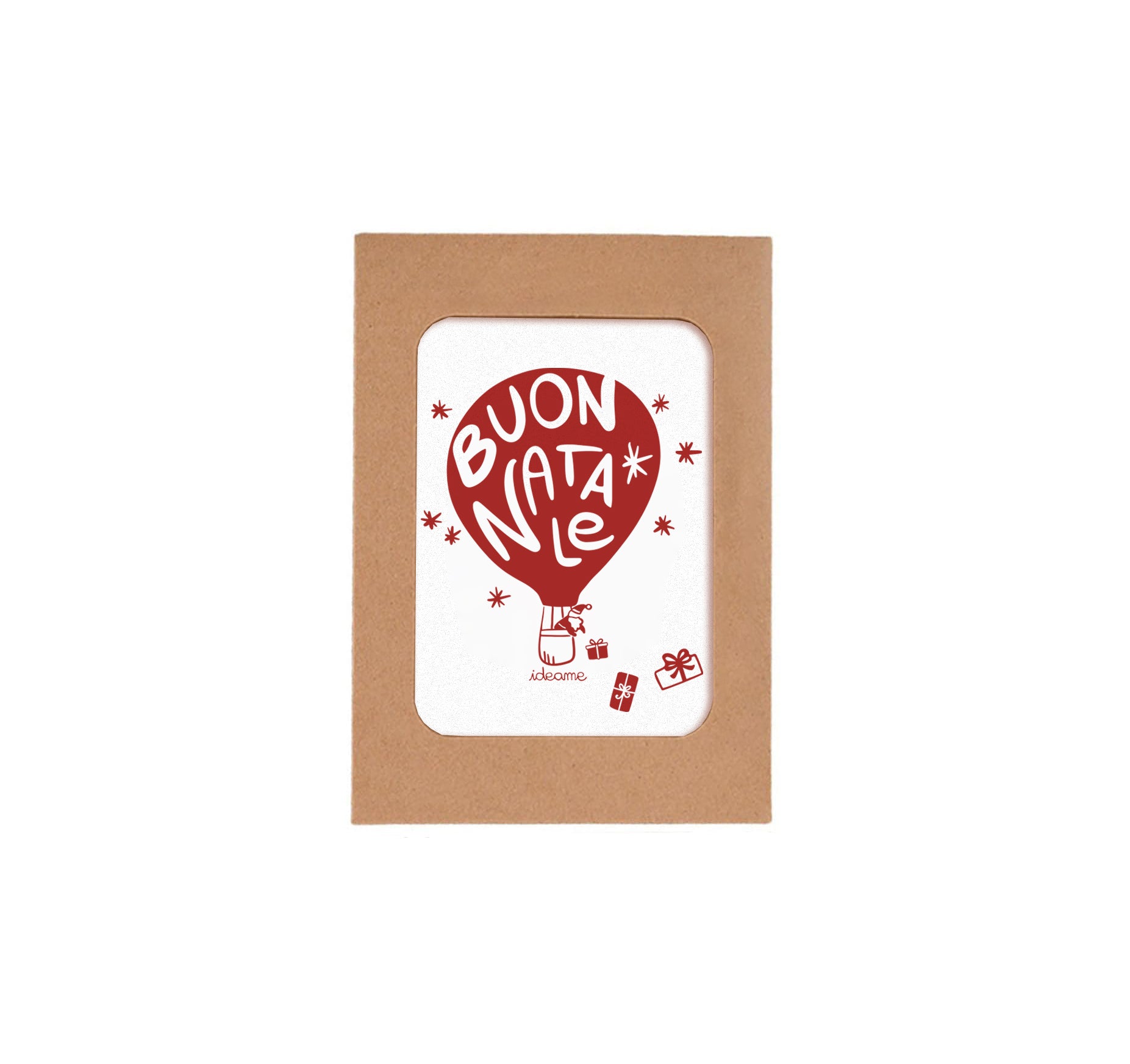 Il set comprende un biglietto stampato su carta ruvida su cui scrivere gli auguri, inserito in una busta/cornice color avana.